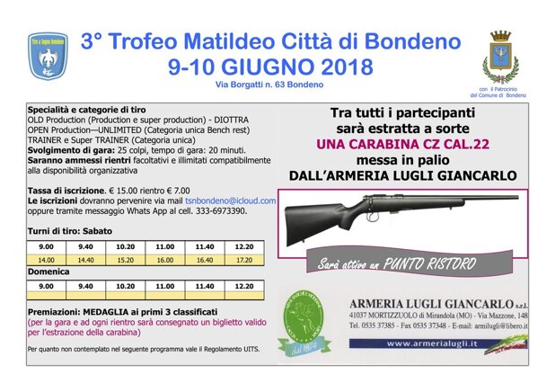 La carabina CZ cal.22 messa in palio dall'armeria Lugli Giancarlo di Mortizzuolo (Mo) è stata assegnata a sorteggio al tiratore Biamonte Mirco del Tiro a Segno di Modena.