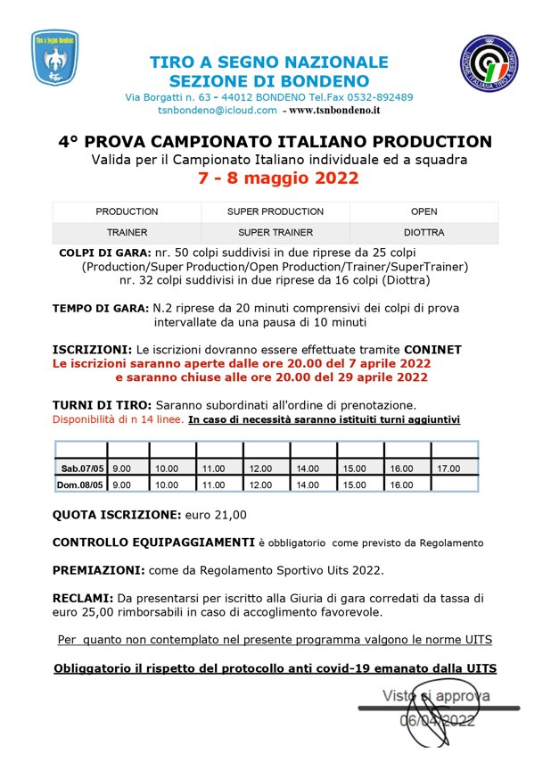 Si è conclusa Domenica 9 Maggio la 4° Prova Campionato Italiano Production. La Sezione si complimenta con tutti i partecipanti per i risultati ottenuti e per la grande affluenza con ben 148 prestazioni.