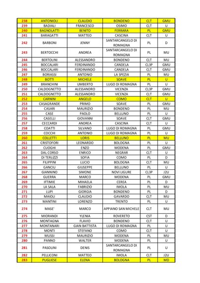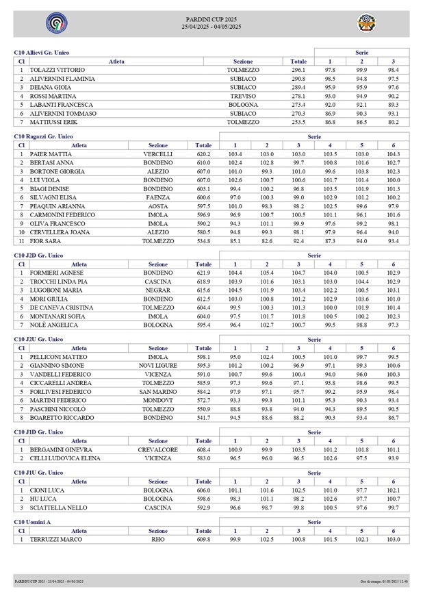 618.9 C10 (Trocchi Linda Pia) + 589 CLT (Baragatti Matteo) = 1207.9
