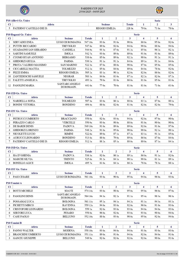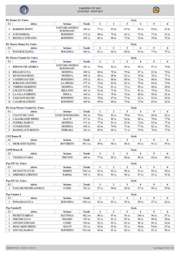 Si è conclusa la 3° edizione della Pardini CUP che ha visto la partecipazione di numerosissimi atleti (circa 246) per un totale di 300 prestazioni.